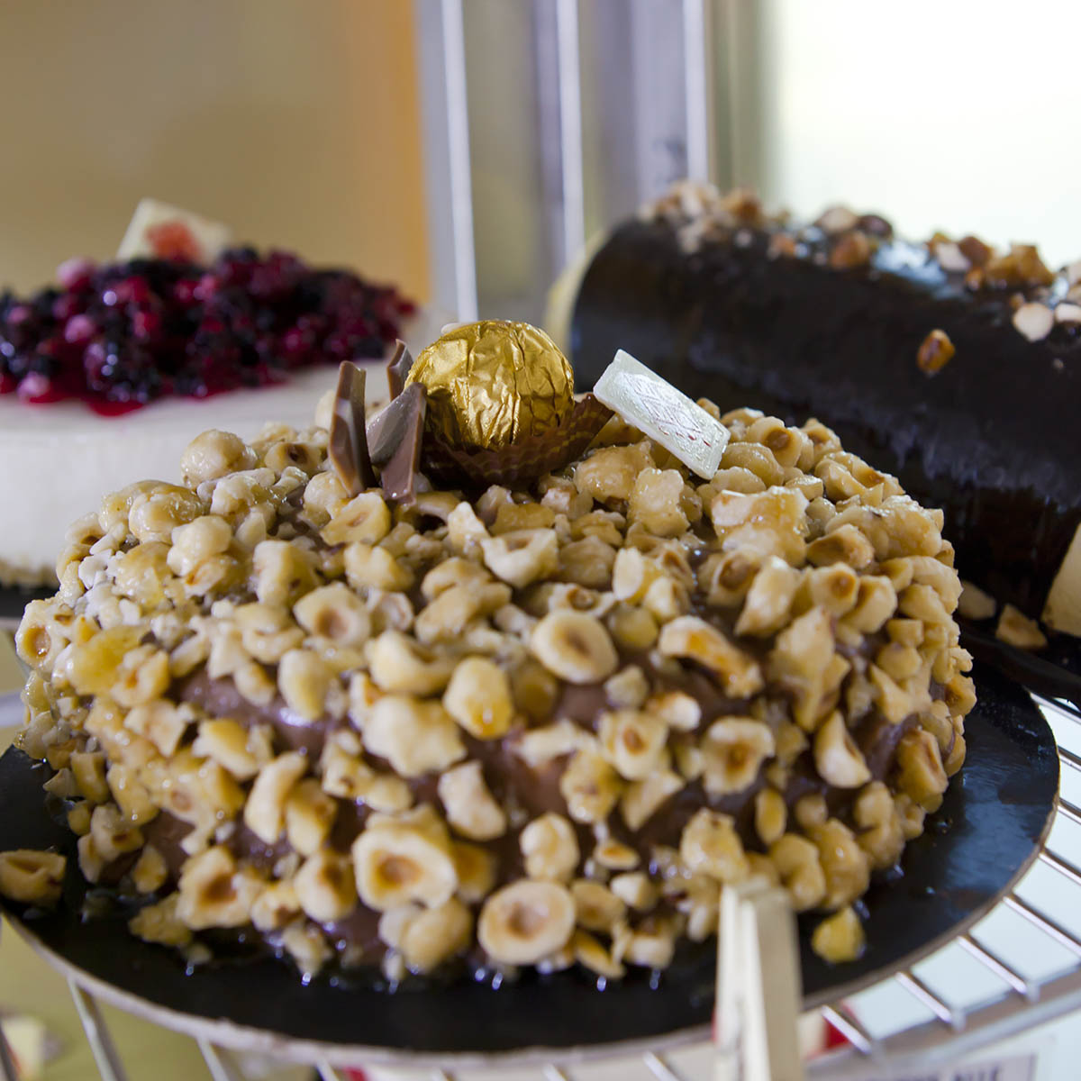 Il banco della pasticceria è sempre pieno di dolci appena confezionati nel laboratorio artigianale interno. Su richiesta, si preparano dolci e torte su ordinazione e si allestiscono banchetti e buffet per ogni tipo di evento. Il servizio di catering è disponibile su ordinazione ed è destinato a tutti i clienti che, per motivi professionali o privati, devono organizzare rinfreschi per cerimonie.